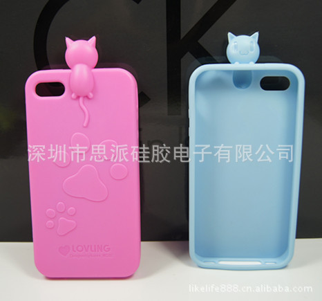 iphone5手机套 苹果5手机套 iphone硅胶手机套 小猫手机套定制