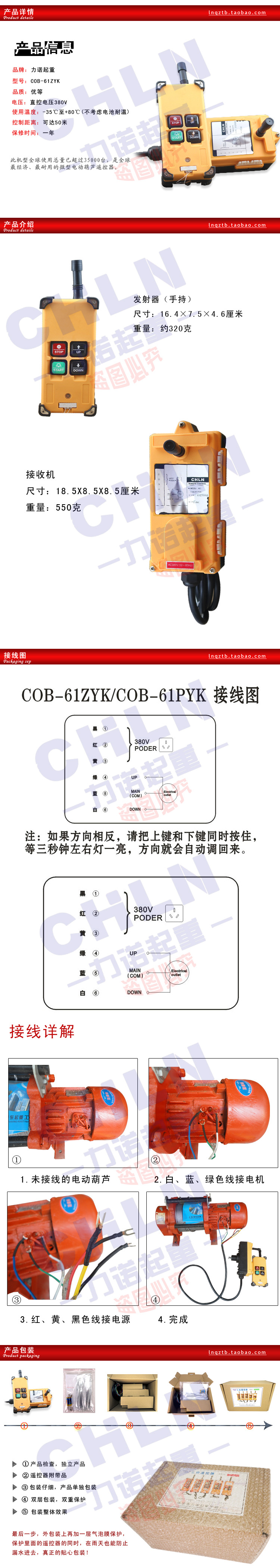 此机型全球使用总量已超过35000台,是全球最经济、最耐用的工业用遥控器。 适用于单钩、单速电动葫芦或葫芦式行车、起重机及9个接点以下的工业控制遥控用。 安全提示: ※黑色1号线和棕色2号线接线时应根据你所订购产品的电源电压等级确定接线电压。 ※棕色4号线为控制线的公共输入。 ※红色3号线为总启动控制。 ※粉红色11号线可作为电铃或电磁吸盘控制,作为电铃控制时,应为点动;而作为电磁吸盘时,则应为自锁控制。 ※任意输出线当不用时请加以绝缘包扎并固定。