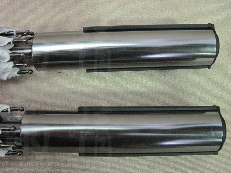 2.伞骨检查.伞骨应不易生锈, 富有弹性, 手感软硬适度, 收落后应紧贴伞杆,铆钉连接处应灵活适度, 光整无刺.