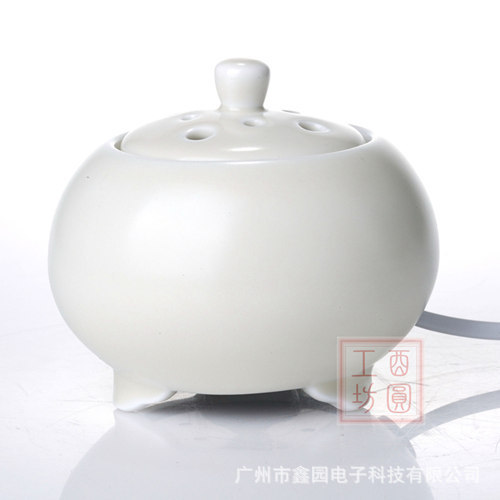 电子熏香炉简介电子熏香炉是目前最流行的熏香方法,纯味、无烟、环保、操作简单,此产品应用高科技电子芯片发热,省电,放入纸张也绝不燃烧可采用台湾桧木、檀香、沉香等木片(木粉)以干馏法,免点火就能萃取花瓣、树叶、果皮、木片、檀香粉之中的纯精油,闻着哪徐徐飘起的一丝丝香气,可以起到提神、定气,心静神宁,心灵合一,正磁场、正气、禅定,辟邪、解厄、旺财、开运,净化空气,杀菌消毒的作用,适合用于阅读或坐禅,健康又环保,轻松享受大自然的芬多精!电子熏香炉不但是礼佛 静心 弹琴 品茶 最好之伴侣,而且是精致生活高贵的品位人士首选,送礼必备之佳品,是香道家不可或缺少的祈神、降灵、打坐、参禅、驱邪、熏修必备珍宝。