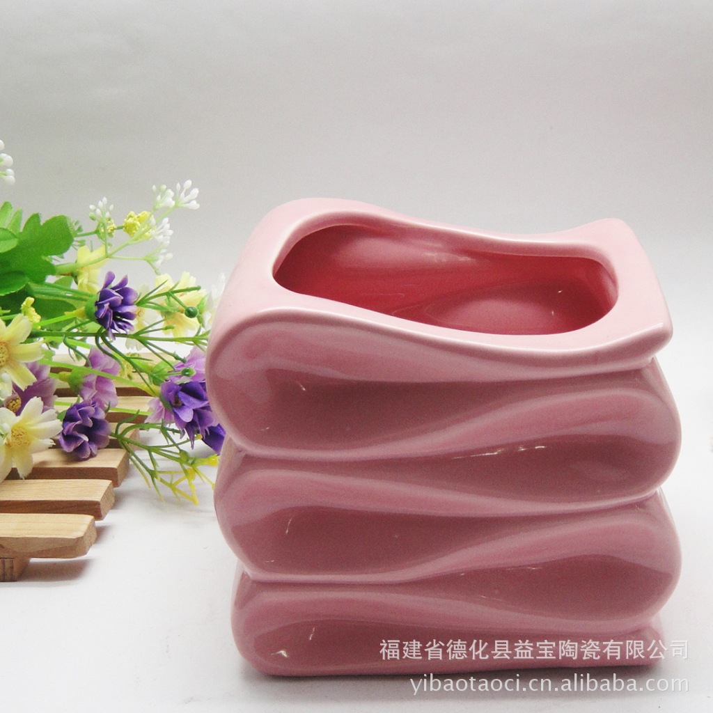本公司生产的陶瓷花盆,色彩鲜艳,品种多样,形态各异,且价格也低,是养花者购花盆时的首选