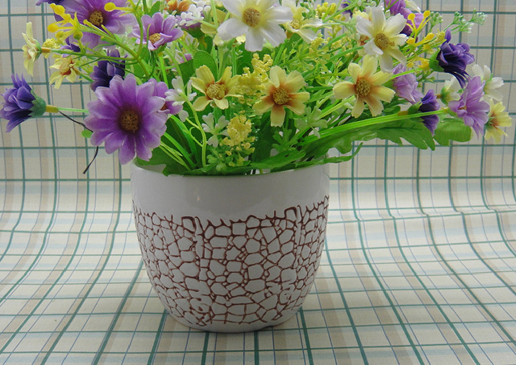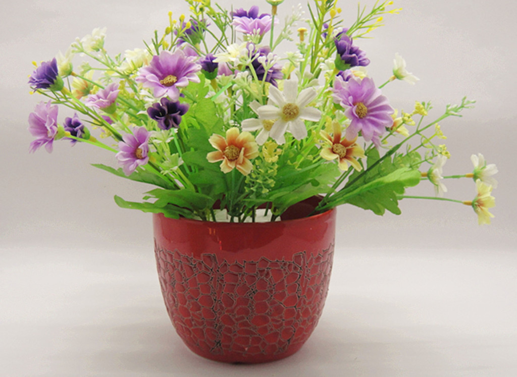 本公司生产的陶瓷花盆,色彩鲜艳,品种多样,形态各异,且价格也低,是养花者购花盆时的首选