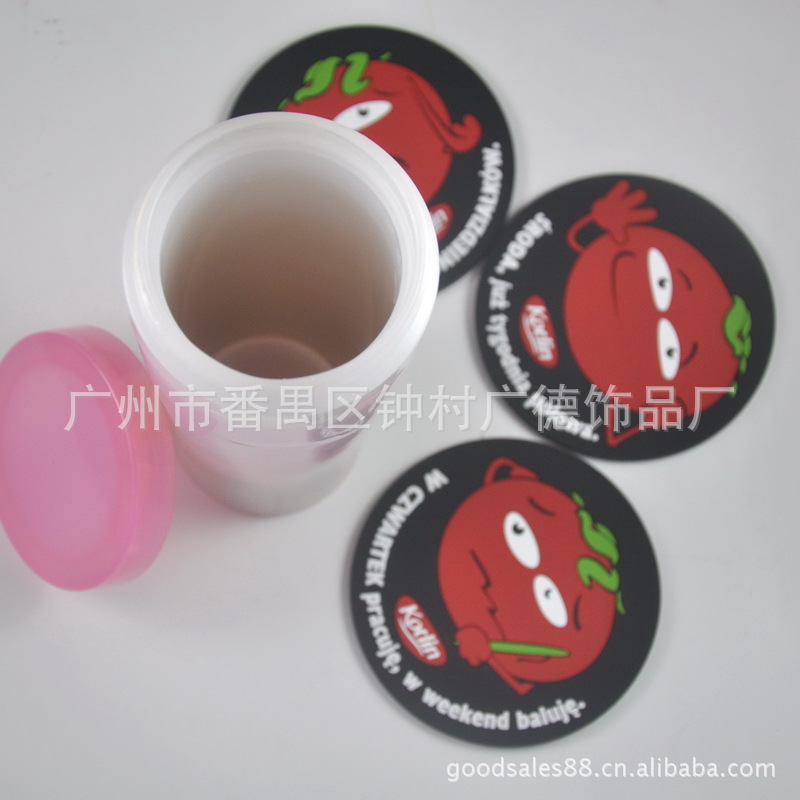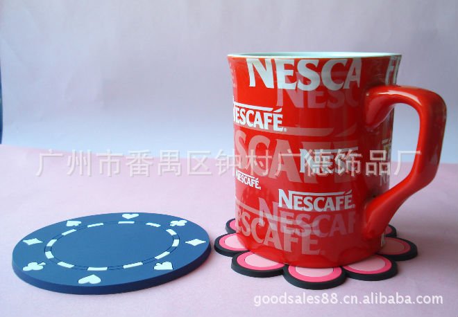 产品尺寸:9*9CM | 描述:按客户来图定做各种外观形状,外观流畅。 印刷完全按客人提供设计图制作。 点胶工艺 让客人LOGO栩栩如生。 Pvc软胶杯垫广泛应用到促销领域。 是企业或团体宣传的最佳选择。 |