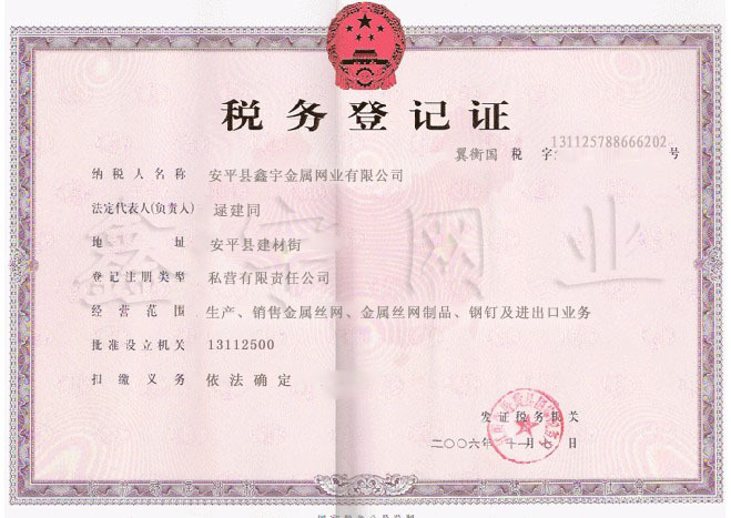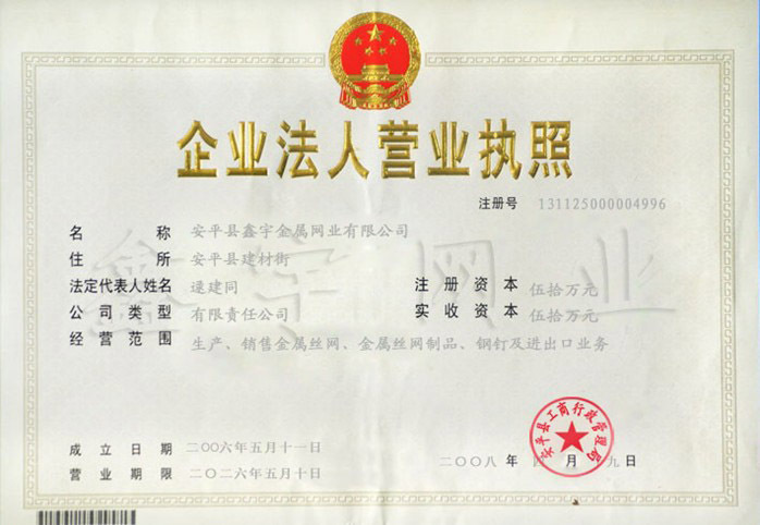供货单位:安平县鑫宇金属网业有限公司