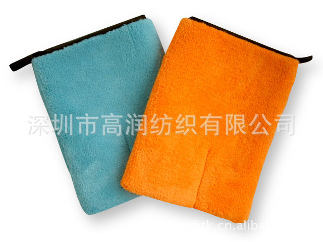 超细纤维毛巾高吸水性:超细纤维采用橘瓣式技术将长丝分为八瓣,使纤维表面积增大,织物中孔隙增多,借助毛细管芯吸效应增强吸水效果。快速吸水和快速变干成为它的显着特性。 强去污力:纤维细度为真丝1/10,头发丝的1/200,其特殊的横断面能更有效地捕获小至几微米的尘埃颗粒,除污,去油效果十分明显。 不脱毛:高强的合纤长丝,不易断裂,同时采用精编织法,不抽丝,不脱圈,纤维也不易从毛巾表面脱落。用它做成清洁巾,擦车巾,特别适合擦拭光亮油漆表面,电镀表面,玻璃,仪表及液晶屏等,在汽车贴膜过程中对玻璃做清洁处理,可达到非常理想的贴膜效果。 长寿命:由于超细纤维强度大,韧性强,因此它的使用寿命是普通毛巾使用寿命的四倍以上,多次水洗后不变形,同时,高分子聚合纤维不会像棉纤维那样产生蛋白质水解,即使用后不凉晒,也不会发霉,腐烂,具有超长寿命。易清洗:普通毛巾使用时,特别是天然纤维毛巾,将被擦物体表面的灰尘,油脂,污垢等直接吸收到纤维内部使用后残留于纤维之中,不易清除,用了较长时间后甚至会变硬失去弹性,影响使用。而超细纤维毛巾是把污物吸附于纤维之间(不是纤维内部),再加之纤维纤度高,密度大,因此吸附能力强,使用后只需用清水或稍加洗涤剂清洗即可。 不掉色:染色工序采用TF-215等针对超细纤维材料的染剂,其缓染性,移染性,高温分散性,消色性指标均达到出口国际市场的严格标准,特别是其不掉色的优点,使其在清洁物品表面时完全不会带来脱色污染的烦恼。