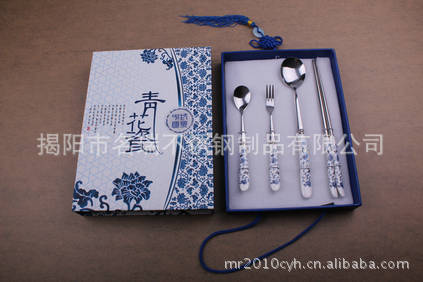 揭阳名瑞餐具生产的不锈钢餐具,礼品餐具,各种陶瓷餐具,青花瓷系列餐具套装。适用人群:★妈妈:这个随时可放包里,无论去到那里宝宝吃东西都有自己干净卫生的餐具;★旅游:小巧可随身携带,无论坐火车,去饭店,都有自己干净卫生的餐具;★学生/老师:小巧可随身携带,在大饭堂里再也不用担心餐具不卫生了;★上班族:天天在外吃快餐,一次性筷子都是漂白水,长时间用肯定对身体不好,有了它真方便,喝汤有勺,吃菜有筷子,吃水果有叉子。 备注: 1.报价为出厂价,每加一色丝印另收0.10元/色 ; 2.交货期为1-15天。如有现货可在1天内出货; 3.报价为揭阳发货价。联系人:岑燕华 电话:18925615880 QQ:1324438695