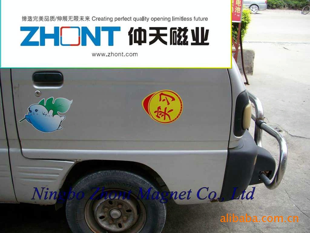 磁性汽车贴是用于汽车车身的磁性贴纸,是有0.8mm 厚的磁胶 + PVC(丝印) 两部分组成。是一种可以移动的车身贴,并且不会在车身上产生污染,方便更换。