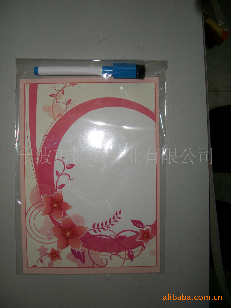2)磁性书签:采用下面软胶磁铁(对吸磁)+上面铜版纸铜版纸或PVC四色印刷腹膜对折制作而成。 (中间可热压对折或切断对折两种)我们在软磁的表面作了涂布处理,让你更能保证书面的干净。 3)磁性冰箱贴:采用下面软胶磁铁+上面铜版纸或PVC彩色印刷腹膜制作而成。常规使用的是0.4MM厚的软磁 但也可以根据客户的要求调整软磁的厚度可以在0.4-2.5之间选择,满足不同客户的需求。如图: 4)磁性留言板白板:采用软胶磁铁(或纸板)+铜版纸四色印刷裱光膜+可擦笔,也可以做成磁性写字板和相框同时一起使用,方便,美观,时尚。可在里面放自己的朋友亲人的相片等。