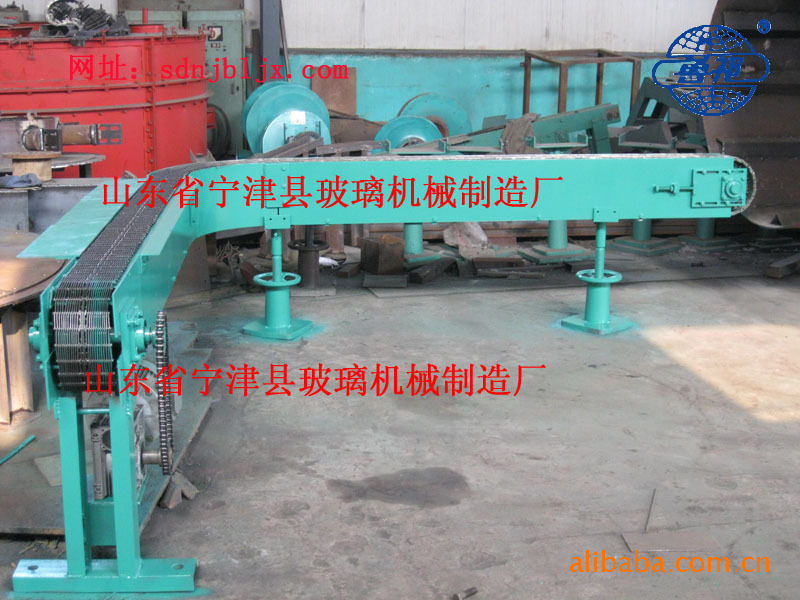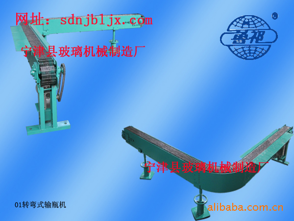 转弯式输瓶机是我厂自行研发设计的更新换代产品。主要用于玻璃器皿和瓶罐行业。该机安装于退火炉前,与制瓶机、压杯机的延长支架相衔接。解决了以前输瓶机在布局角度上的难题。填补了国内的空白同时替代了弧线递送机,并节省了能源,使玻璃制品在转向输送过程中,更平稳的输送到退火炉前。便于与推瓶机实现同步集中控制,减少了故障率,节省了工作时间及电能。大大提高了产品的成品率,使经济效益显著提高。