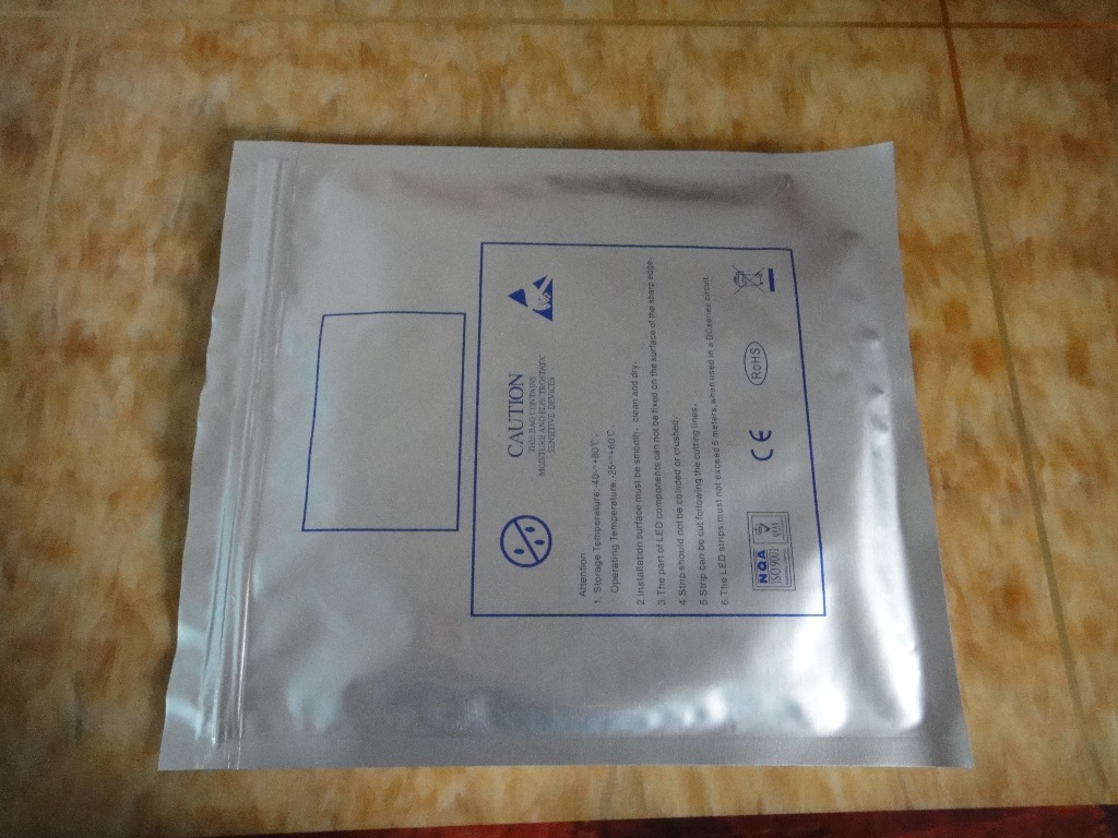 | 品名: 防静电铝箔袋 品牌: 欧克华迪 规格: 215*245 12丝 材质: PET/AL/PE 阻值: 108至1010欧姆 印刷: 纯英文印刷 金属铝色不透明 封口: 拉链式封口 可重复使用 数量: 6000起 包装: 2000pcs/CTN 应用: 电子产品防静电袋--led软灯条专用包装 (led 硬盘 PC版 等) 效果: 高密封性 高阻隔性 防静电 |