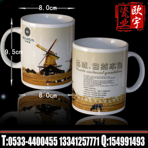 白瓷马克杯:1000只起,移印费另计,10000个以上免版费