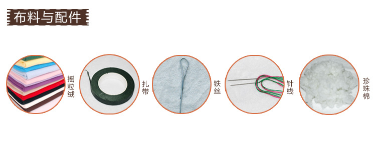 | 偶耶足够的针线辅料: 材料包中已含顾客所需的各色手缝线和手缝针,还有各种辅料。 使用过程中不变形。 | 有必要的辅料,散装提供,材料包中不含的手缝针和线,顾客需要自行准备或另外购买。 | | 7 |  制作说明书
