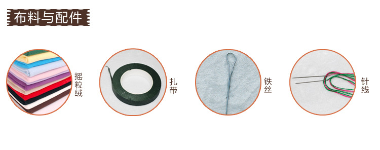| 偶耶足够的针线辅料: 材料包中已含顾客所需的各色手缝线和手缝针,还有各种辅料。 使用过程中不变形。 | 有必要的辅料,散装提供,材料包中不含的手缝针和线,顾客需要自行准备或另外购买。 | | 7 |  制作说明书