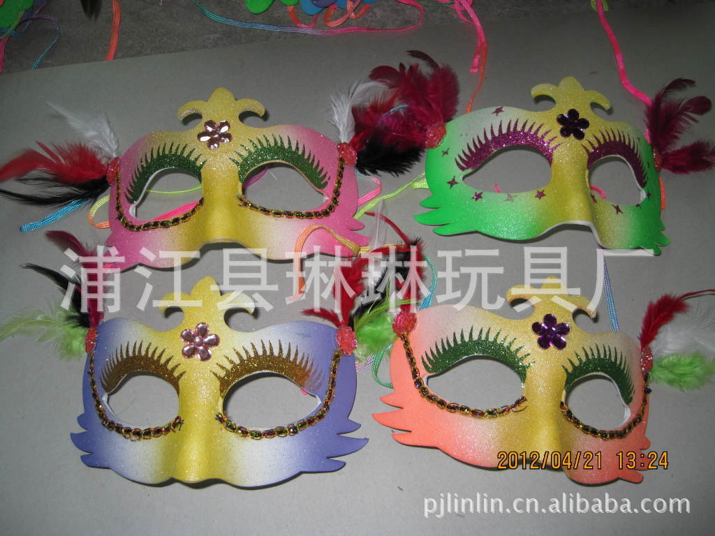 琳琳玩具厂专业生产EVA舞会面具,材料环保,款式多样,色彩鲜艳,质优价廉,质地柔软,佩戴起来比塑料的更舒适,实在是你舞会派对上不可多得的法宝,可以来样定做,欢迎来电咨询!