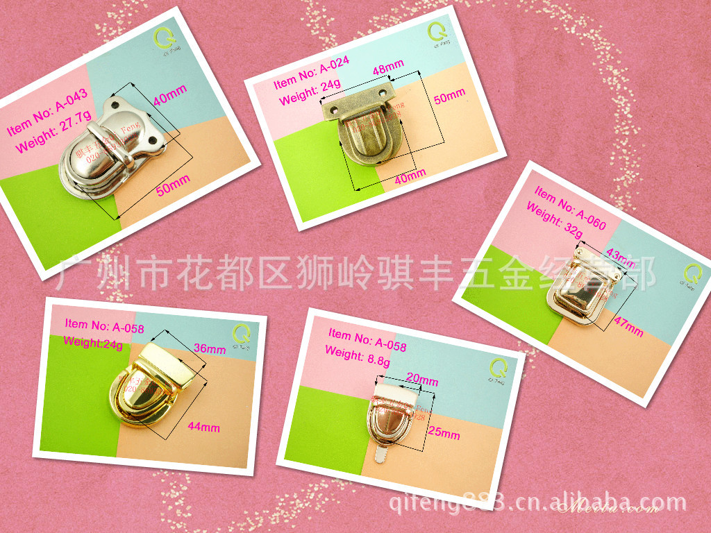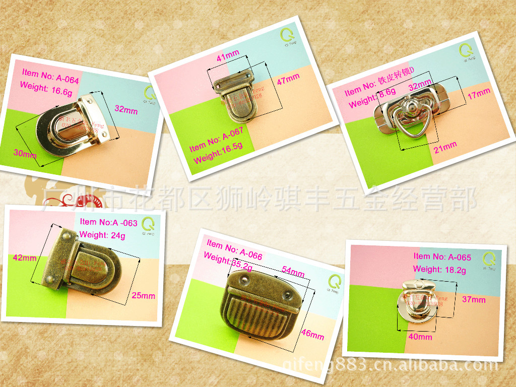 我司是专业生产各种箱包五金配件,产品品质优良,种类齐全,有各式各样的箱包锁、密码锁、及其它箱包五金配件,同时也生产多种款式新颖的扣类。