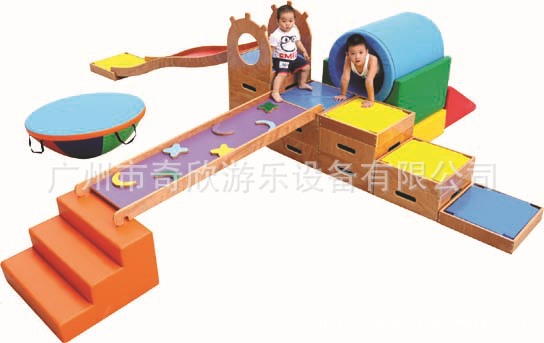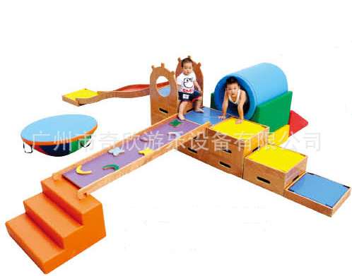 部件说明:本产品由多功能综合平台,平台过道,大A字架,小A字架,大子母盒,小子母盒,花形扶手盒,软垫,平直滑梯,波浪滑梯,空洞攀爬梯,星月攀爬梯,步步高木制步道,软体滚筒,软体积木,软体陀螺,地垫,软体在步梯,等综合构成。客户可根据场地自由选择配置,或根据你的场地通过本公司为你量身定制配置。建议增配其他亲子园软包教具建行配合使用,效果更佳。