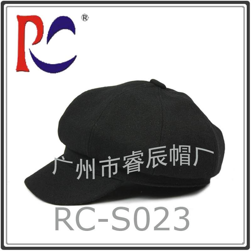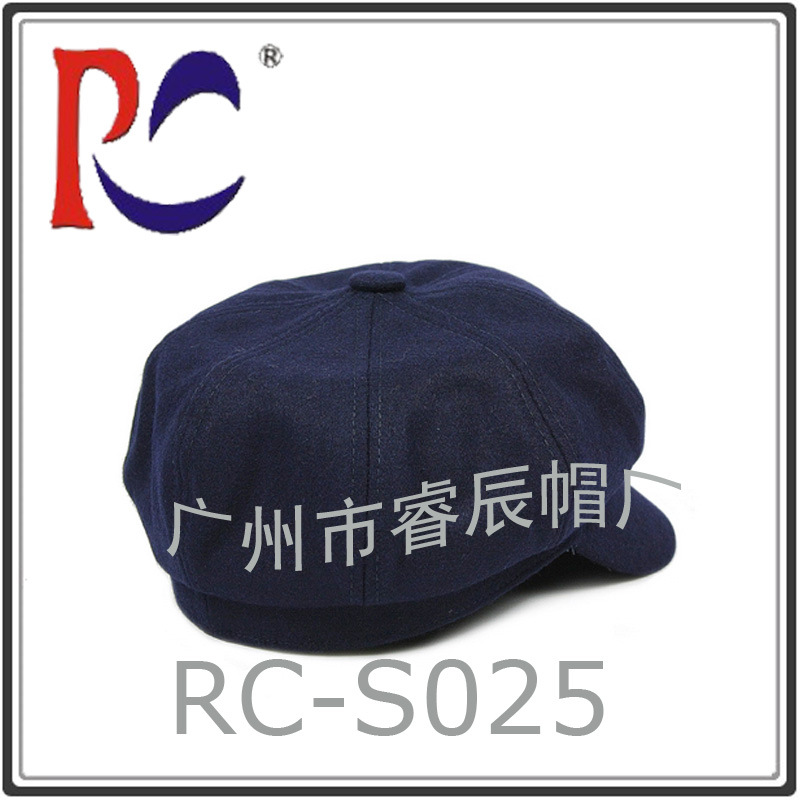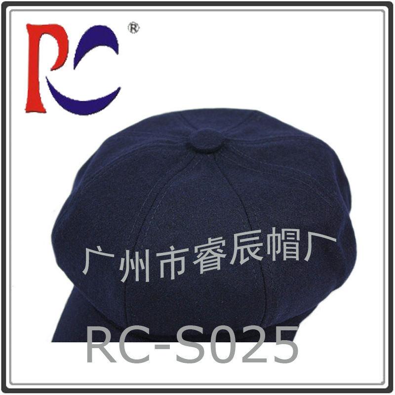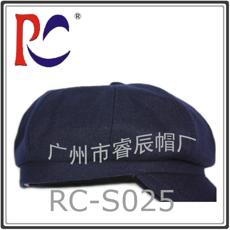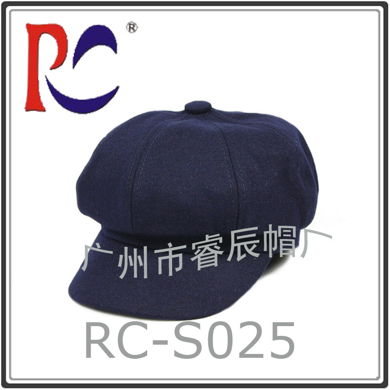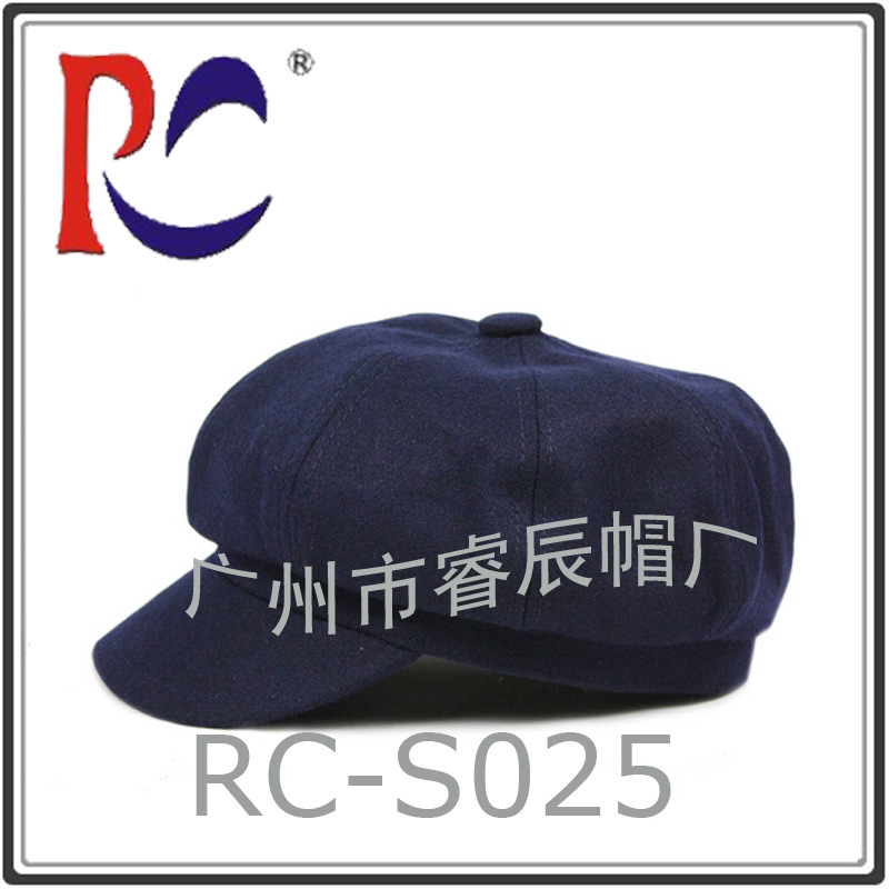 毛呢帽子女士 深宝蓝色 欧美时装帽 马术八角帽 女士帽子时装帽