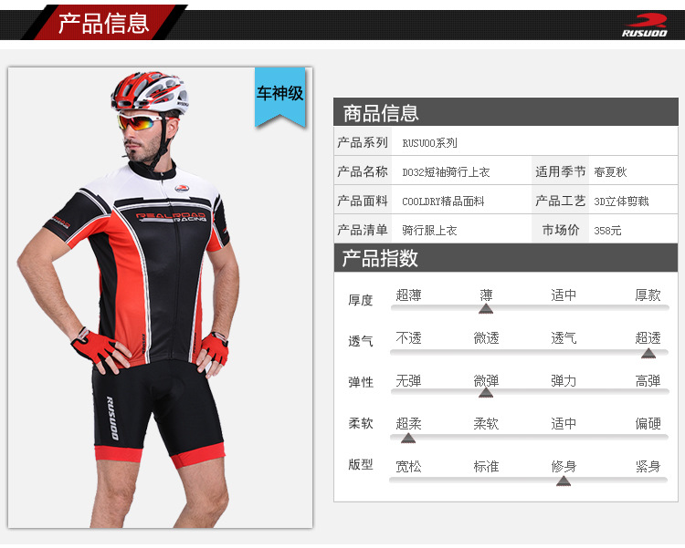 RUSUOO-D032骑行上衣 山地专业骑行短袖单衣 自行车男骑行短袖