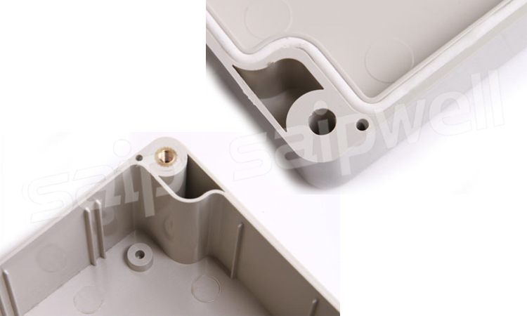 6.按装方式:1.内部按装—盒子内部有供线路板或DIN轨道元件安装的凸台,及自带的铜接线螺母(每只防水盒内部都配有最少二个以上的很常规的M4的铜螺母)2.外部按装--可通过盒体低部的安装孔直接固定于墙面(可通过盒子的四个角,直接用螺丝或钉子固定在墙上或板子上。)