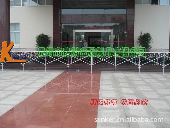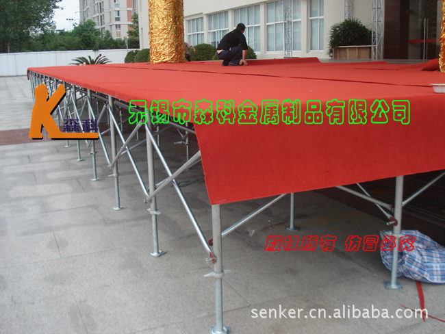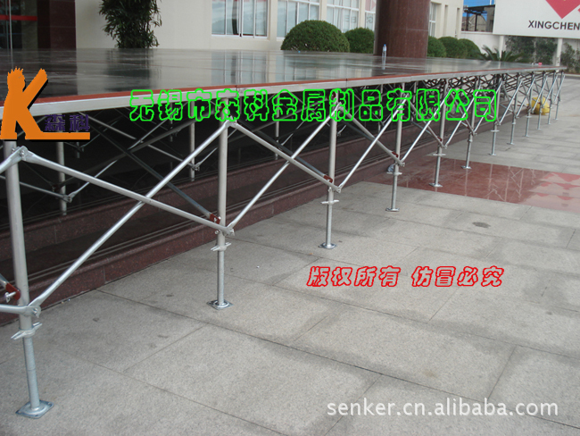 无锡市森科金属制品有限公司是一家以专业生产展览钢制桁架,快装活动舞台(专利),移动式脚手架,铝合金桁架,铝合金灯光架,雷亚架,A字架,铝合金舞台,玻璃舞台,折叠舞台,T台为一体的综合性的大型生产企业。公司拥有成熟的销售团队,竭诚为您提供最优质的服务,拥有最强大的技术和设备支持,全力为您打造质量最精的产品,公司秉承“质量为首,服务为先,诚信为本”的经营理念,立志在行业内创出辉煌!争创行业第一!欢迎来厂参观洽谈。