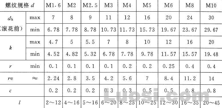 本公司所提供的GB835-88 滚花平头螺钉尺寸大小参数如下: