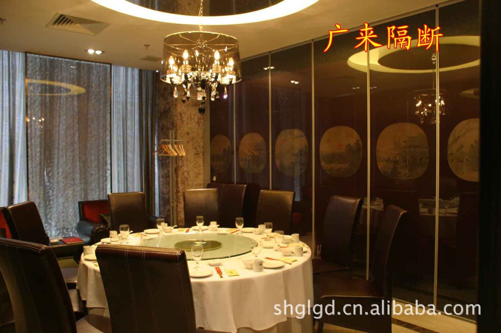 活动隔断具有以下特点:1.顶置式轨道:只需将轨道安装于楼板上或承重梁或网架上;地板无轨道,对地面没有任何破坏2.铝合金型材独特:轨道及隔断墙板铝合金为6063 T6型,并可进行表面氟碳喷涂。3.强力耐磨的吊轮:吊轮的使用寿命长达10万次以上。4. 稳定性强:隔断全部拉出锁紧后稳固可靠,不易摆动,可以承受50-100公斤的撞击力;最高可以做到15米。5. 隔音环保:隔音效果好,门板的上下两侧各有四道密封胶条、左右各有两道密封胶条。最大隔音系数可达60分贝;并采用环保材料进行加工。6.高效防火:选用高效防火材料制作,防火性能良好;防火等级为A 级。7.风格多样:隔断门板表面可做成三合板、防火板、壁纸、软包布等装饰面,可与室内统一装饰风格,整体美观大方。8.收放灵活:隔板收放自如,推动灵活,一个人就可以完成隔断整个过程;9.节省空间:收板时,隔板可以隐藏在专用的任意空间,为您节省有效的空间且收藏方便。10.适用广泛:宾馆、酒店、多功能厅、会议室、展览厅、高洁净工厂和办公等场所均可适用。固定隔断产品按照墙体厚度分为PDSg80型PDSg100型两种,框架铝合金为6063t6型。产品高雅、简洁、精致,并具有以下特点:1、色泽多样、样式灵活:框架铝合金可以根据客户需要颜色进行表面氟碳喷涂,色泽丰富多样;可以分隔成上下两段式、三段式、单层玻璃,双层玻璃夹百叶、磨沙玻璃、板式、布类表面装饰等多种样式。2、现场组装,量身定做:将所用的隔断框架材料运至施工现场进行组装,量身定做,避免尺寸上的误差。3、内置结构、重复利用:所有连接及固定均在产品内部完成,并可拆卸、重复利用。可以在框架内部进行电线铺设。不用打墙预埋,电线的维护、更换更方便,强弱电分离。4、隔音、防火:内置密封胶条,起到隔音、防尘的作用。隔断系统全部由金属结构组成,可选用防火玻璃、彩钢板等防火材料。材料的抗火性可达到30,60或90分钟。5、无污染、无异味:安装后可马上可以使用6、隔断配套门、锁样式灵活:可以与有框玻璃门、无框玻璃门、实木门配套使用,并可以做成单开或双开门;门锁的选择有压把式或其他多种样式。