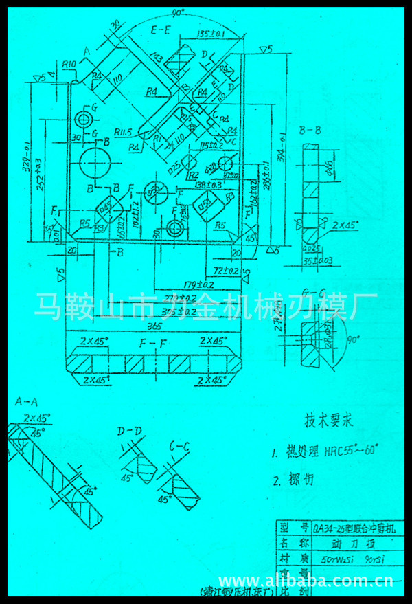 本公司专业生产Q34-10、 Q34-16 、 Q34-25 靖江等地产冲剪机定刀片、动刀片及冲孔模具;现货提供Q35Y-12 、Q35Y-16 、Q35Y-20、 Q35Y-25、 Q35Y-30元义牌液压联合冲剪机、液压单头冲孔机、多功能槽钢剪切机及其方钢圆钢模具板、槽钢模板、角度模板等配件。