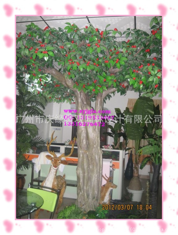 广州市庆缘景观仿真树,是广东省一级仿真树生产企业,专业生产仿真椰子树、仿真海藻树、仿真棕榈树,保鲜棕榈树,仿真古榕树,仿真桃花树、仿真樱花树、仿真枫树、仿真松树、仿真盆栽、仿真花等仿真植物,承接各大商场、酒店,写字楼别墅,机场、会展厅、游乐场所、高档写字楼大厅,生态园景观,生态园餐厅等造景工程。专业赢取机会,服务获得信赖。