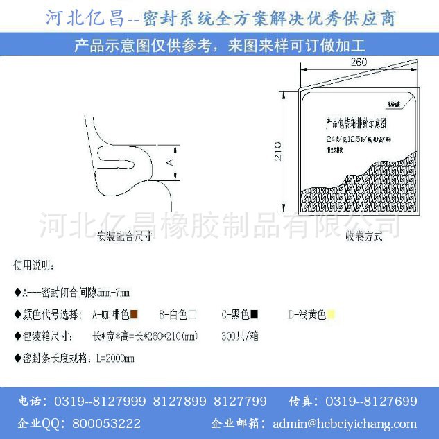 包覆式密封条由四种质地优良的材料复合而成产品——坚韧的外皮层不但为包覆式密封条由提供了最基本的质量保障,而且美观大方,是现代家居门窗绝好伴侣;热固性芯,主要成分为PU,也就是包覆式密封条主打材料,其超强的可塑性加上我公司的过硬技术,正在满足不同门窗厂商的需求;内部的PP骨架以及塑料与橡胶完美结合的TPU鱼刺倒钩设计和德国进口的双面胶带的分类应用进一步完善了包覆式密封条。包覆式密封条由分为自贴式和卡槽式,使用于不同门窗,在操作安装上更是便捷可行。 骨架型包覆式密封条,由四种质地优良的材料复合而成——PE+PU+PP+TPE.每款包覆式密封条都有四种颜色——白色,浅黄色,咖啡色以及黑色,不同颜色点缀经典门窗,由外及内的满足客户需求,产品立足中高端,不仅美观大方,更有10年品质保证。包覆式密封条在耐老化、耐疲劳、压缩变形测试、压缩力测试、热传导K值测试、水侵性、水渗透性等测试中均取得超越所有传统产品的优秀的结果;同时包覆式密封条节能环保、隔音降噪、抗强紫外线,无毒、不与任何油漆、清洁剂发生反应,迎合新时代绿色健康主题。 德国进口的双面胶带的分类应用进一步完善了包覆式密封条,在防盗门、铜门、不锈钢门的金属门上的黏贴效果极佳,可适应户外四季温度的变化,在操作安装上不仅可节省30%的生产效率,同时更是便捷可行。以下提供包覆式密封条的有关技术参数供各界客户确认:1.包覆式密封条的优越性能压缩变形测试:70℃下,50%的压缩率持续压缩22小时,变形率≤10%2.压缩力测试:在25%的压缩率下,施以15N/100mm的力,压缩率≤10N3.温度范围测试:从-40℃至90℃,密封性能无明显变化4.热传导K值测试:0℃下K值≤0.035W/m2K5.耐疲劳测试:模仿窗户开关50万次形状无明显变化6.隔音性测试:只带有中间胶条IV68窗户降嘈43分贝 带有中间胶条和附加胶条的IV76窗户降嘈45分7.贝户外耐老化测试:目前已达20年以上性能保持完好产品特色高级工程用聚乙烯外包膜,良好的耐漆性及耐迁移性,引人的外观8.抗UV(紫外线),耐日光及紫外线5000Kj/㎡,无剥蚀。高弹性开孔发泡聚氨酯材料,长时间保持形状和高弹性温度范围-40℃至70℃