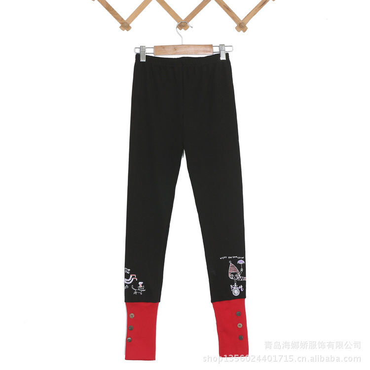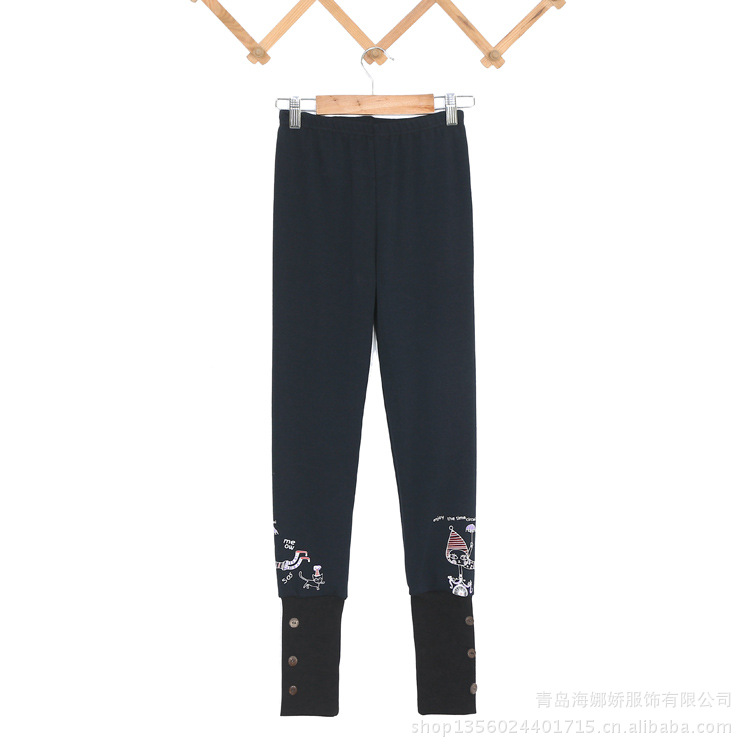 新款春秋装韩国小猫图案 打底裤女韩版潮九分裤拉毛打底裤批发