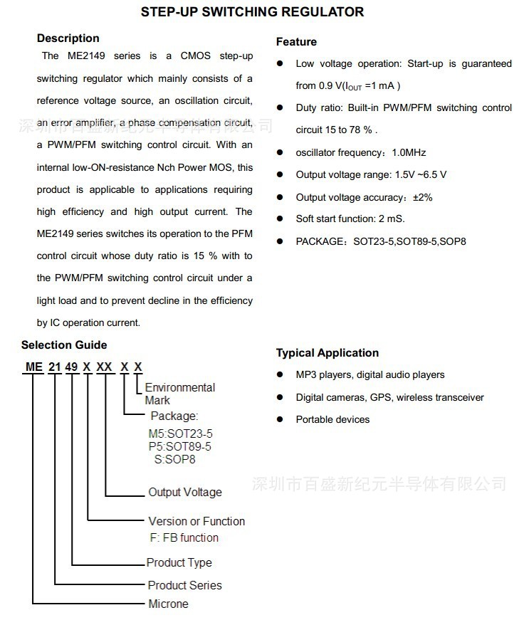 Step-Up DC/DC Converter(升压DC/DC转换器):MEXX1C、ME2100、ME2101、ME2108、ME2109、ME2129、ME2139、ME2149、ME2188、ME2110