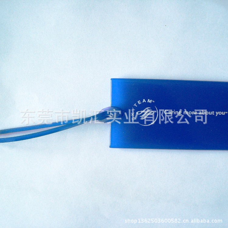 “行李牌”指识别行李的标志和旅客领取托运行李的凭证。可以分别使用在飞机场,铁路等公共场所。行李牌的材质有PVC、PU、ABS等,其中pvc材质又有软pvc和硬pvc。软PVC面是软胶pvc,背面是ABS的行李牌背框粘和而成,放纸卡,透明片等可写如信息的 ,再穿上行李牌带子,然后单独OPP袋子包装。硬pvc片:由硬pvc片与透明片采用高周波工艺压制而成,正面可以是复杂的图案。也可以是公司的LOGO,或者迷你可爱的卡通图。PVC软胶制作的行李牌,款式规格可以订做,是近几年用得比较广泛的一种软胶类行李牌,其制作方法简单,受客户的喜爱。