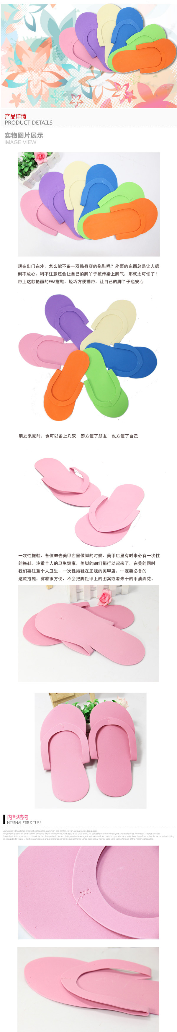 产品特点:一次性拖鞋,各位MM去美甲店里做脚的时候,美甲店里有时未必有一次性的拖鞋。
