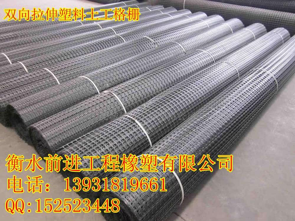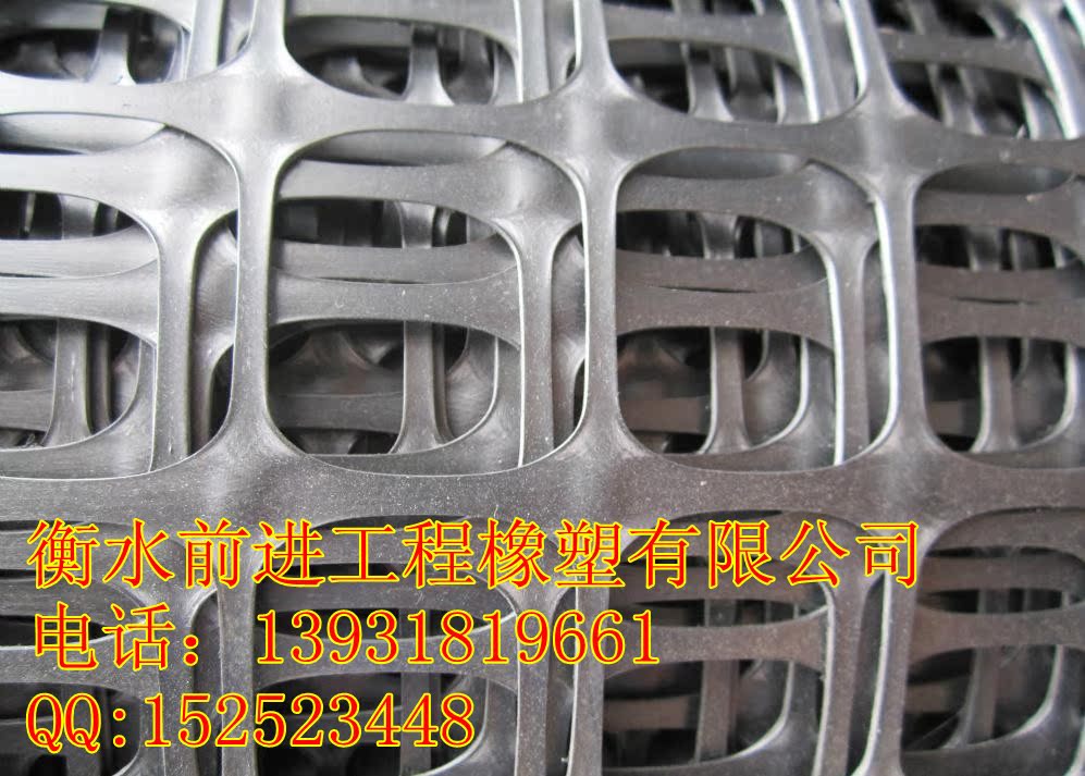 双向拉伸塑料土工格栅是以聚丙烯(PP)或聚乙烯(PE)为原料,经塑化挤出板材、冲孔、加热、纵向拉伸、横向拉伸而成。