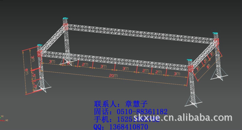 400*600铝合金灯光架参数:主管¢50*3,辅管¢40*2,小管¢25*2,接口50*25*3目字方通,材质:国标铝合金6061-T6。