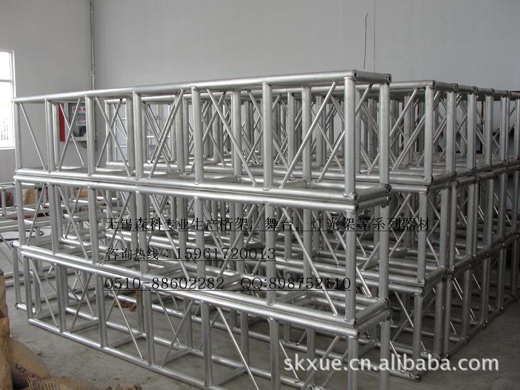 注意事项:一般常用的铝合金桁架立柱为300*300MM的截面,桁架横梁如果挂的东西不是很重用300*300MM的,如果跨度大或者挂的灯光重用400*400或者450*450的。