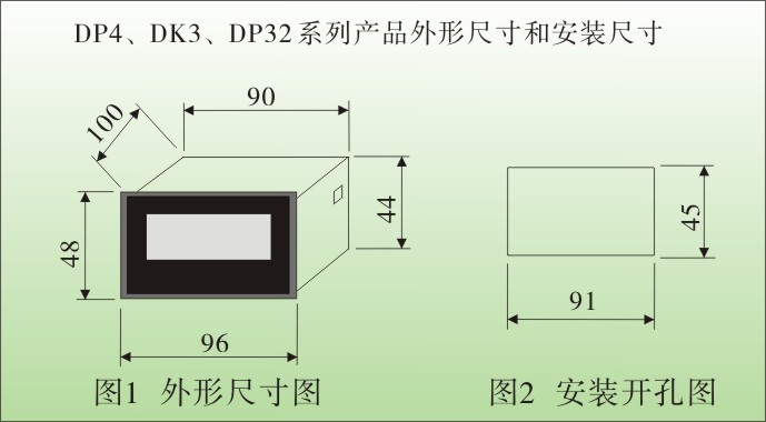 DP4电流电压表外形尺寸和安装尺寸
