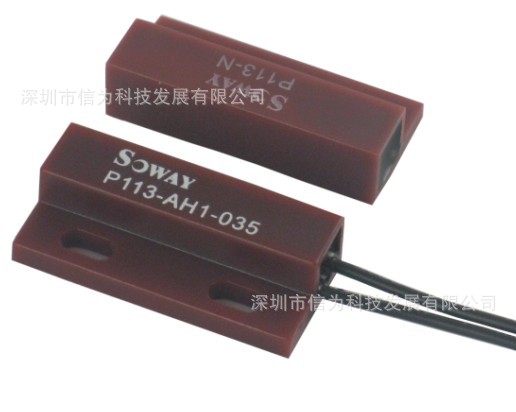 Soway 烘焙机用门磁开关,装而成;磁铁部分由对应的磁场强度的磁铁封装于塑胶或合金壳体内.当两者分开或接近至一定距离后,引起开关的开断从而感应物体位置的变化。用于烘焙机的门上,可检测烘焙机门是否被打开,控制烘焙机的工作。