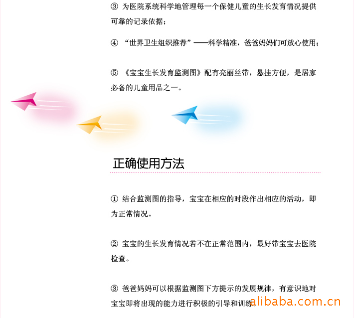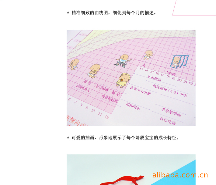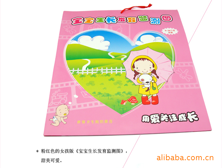 ⑤ 《宝宝生长发育监测图》配有亮丽丝带,悬挂方便,是居家必备的儿童用品之一。