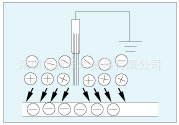 使接地后的除电刷和带电物体之间稍留一点缝隙,刷子的周围会生成正负离子。这些离子将带电物体的静电中和,达到消除静电的目的。