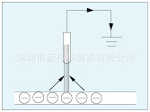 使接地后的除电刷接触带电物,静电会作为泄漏电流逸出,达到除电的效果。