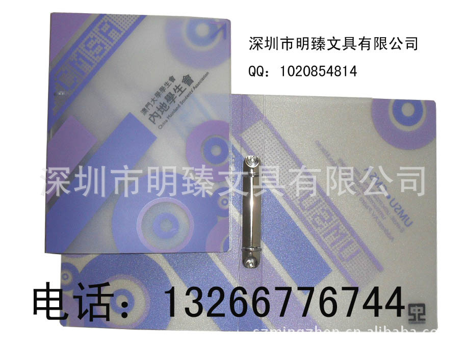 材质:PP文件夹采用优质环保耐用PP原材料生产,在文件夹封面丝印公司名称及LOGO,钉二孔O型夹,在书背处压一透明标签袋,可插入重要标题易识别查找,功能:用于企业宣传,及企业文件的存档和管理