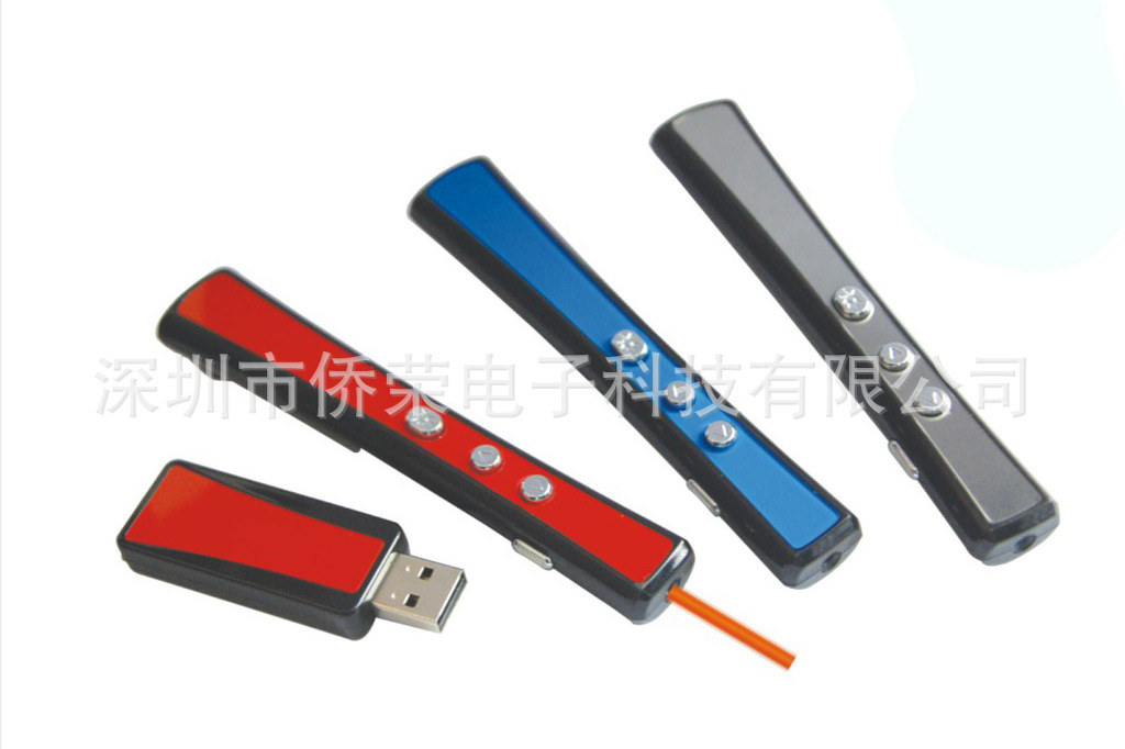 名称遥控激光笔 产品简介 遥控激光鼠标笔运用了计算机的USB技术,射频技术,集遥控电脑功能与激光教鞭于一身,是配合PC机或手提电脑,结合投影仪使用而广泛用于产品演示,电化教学及学术会议等场合的理想演示工具. --演示文稿上下翻页、激光笔激光教鞭融为一体,简单实用 --迷你型设计,外观精美,携带方便,一体设计,方便携带 --RF射频遥控设计,遥控距离可达十米,无须对准接收器,真正体现无线自由 --可在7-15米范围内随意演示文稿,不用配备专人操作PC或笔记本,报告演示、课堂教学只需一人就能轻松搞定 --适用于WINDOW98/2000/ME/XP各种系统 --支持各种文件的演示,网页,电子书的浏览 --USB接口、即插即用,无需安装驱动程序 --干电池设计,更方便携带、更换 --包装高档精美,馈赠佳品,亦可作为笔记本、投影机的促销赠品 包装形式礼盒 |