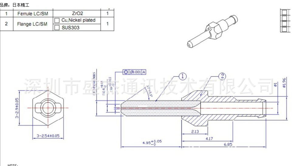 插芯是连接头中的核心部件。二氧化锆是目前目前所有插芯材料中稳定性和可靠性最好的。LC系列二氧化锆陶瓷插芯是目前使用量最大的一类插芯之一,被广泛的运用于LC连接器中,光学性能卓越的特点。