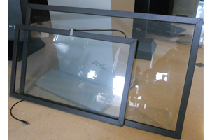 工作原理 红外触摸屏是利用X,Y方向上密布的红外线矩阵来检测并定位用户的触摸。红外触摸屏在显示器的前面安装一个电路板外框,电路板在屏幕四边排布红外线发射管和红外接收管,一一对应成横竖交叉的红外矩阵。用户在触摸屏幕时,手指就会挡住经过该位置的横竖两条红外线,因而可以判断出触摸点在屏幕的位置。外触摸屏,是高度集成的电子线路整合产品。红外触摸屏包含一个完整的整合控制电路,和一组高精度、抗干扰红外发射管和一组红外接收管,交叉安装在高度集成的电路板上的两个相对的方向,形成一个不可见的红外线光栅。内嵌在控制电路中的智能控制系统持续地对二极管发出脉冲形成红外线偏震光束格栅。当触摸物体如手指等进入光栅时,便阻断了光束。智能控制系统便会侦察到光的损失变化,并传输信号给控制系统,以确认X轴和Y轴坐标值。