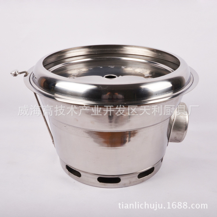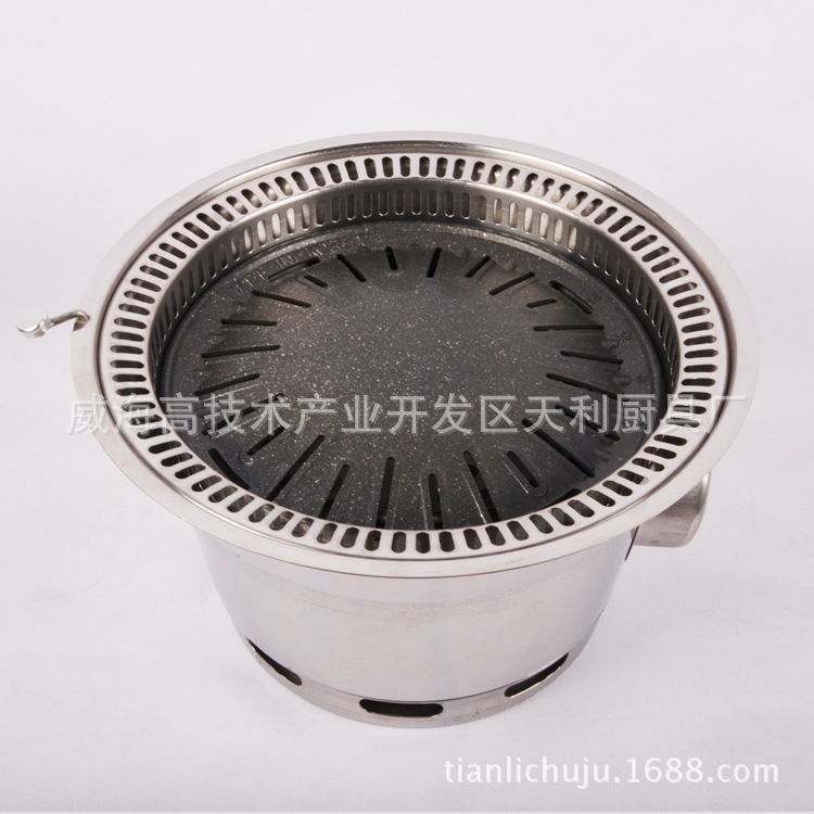 木炭烧烤炉是韩国技术人员我国内制造,为圆形,韩式木炭烧烤炉使用原料为木炭。户外使用也可以不用排烟设备,从排烟方式分为上排烟木炭烧烤炉、下排烟木炭烧烤炉和无烟木炭烧烤炉。烧烤炉采用优质不锈钢制作,一般为圆形。适用于韩国烧烤烤肉店和韩式料理店及日式烧肉店