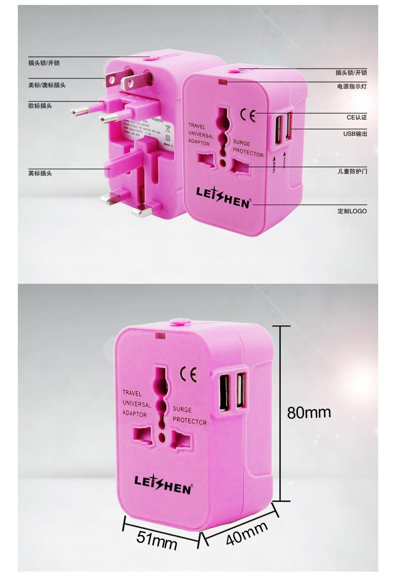 | 插头形式 | 美标,澳标,英标,欧标四种插头一体。 |