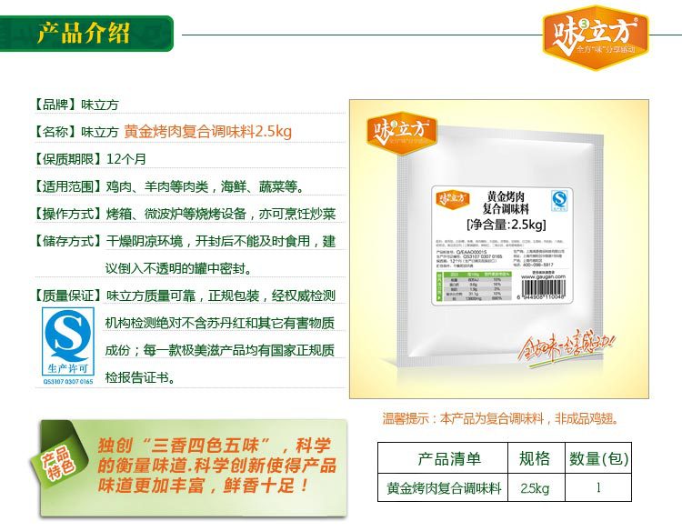 招代理 烘焙原料 味立方烤翅腌料黄金烤肉、烤鸡翅腌料2.5kg