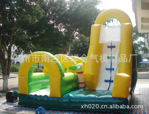 本公司可根据客户需求定制各种充气玩具(充气城堡,滑梯,攀岩,蹦床,漂流船,香蕉船等充气产品),产品采用高强度夹网PVC材料制作,采用先进的缝合,粘接,和热合技术,在各链接部位都采用4重缝制工艺制作,使产品具有安全,美观,耐用的特性。更多产品信息敬请浏览