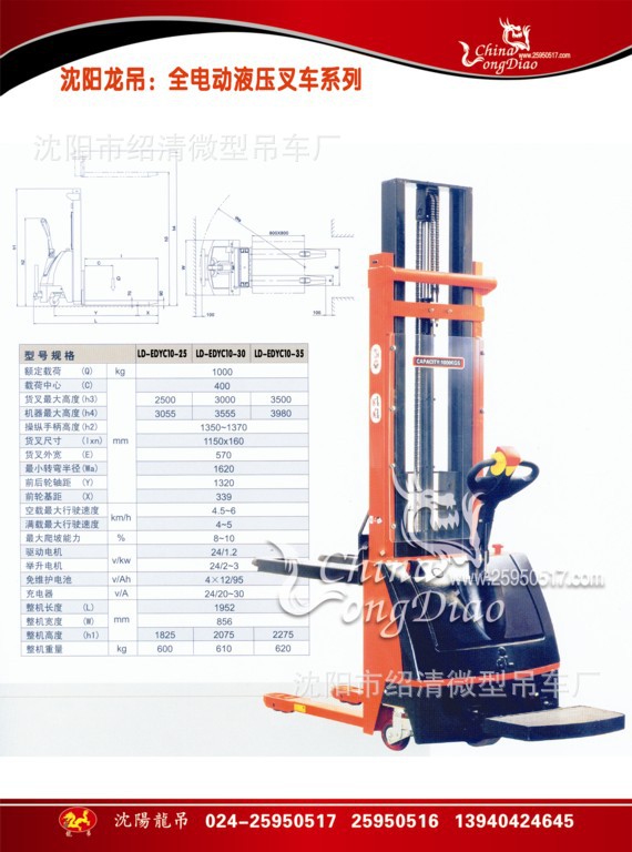 5。全电动叉车:1-2吨/1.6-2-2.5-3-3.5米,欧美标准、意大利驱动单元、美国柯蒂斯电控、出口统一蓄电池、德国进口密封件、两年保修、终身维护、提供原厂配件、